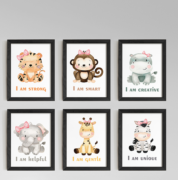 Be the first to review “Safari water colour cute females animals with mtivational quote, Wall Decore Art, 6 frames”
